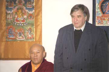 Drigung Kagjü koolkonna pealaama Tšetsang Kjabgon Rinpotše ja MI (BI) president Linnart Mäll. |